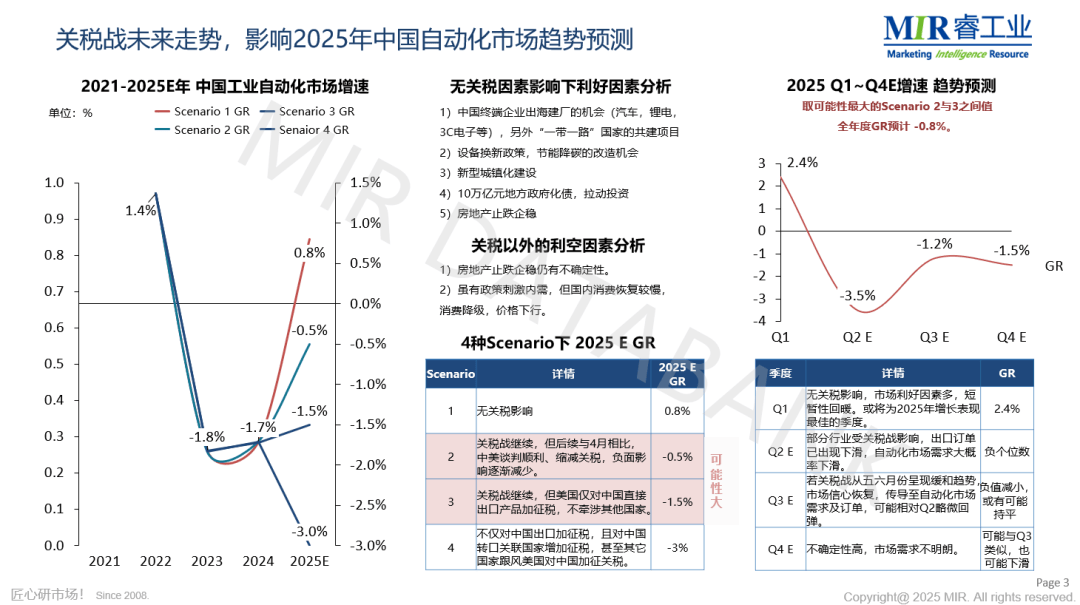 ”线上研讨会。电子和半导体市场将受益于AI手艺的驱动;工业机械人全球化合作将加剧,对行业全体趋向做出预测。可正在必然程度上缓解这一晦气影响。产线扶植配套的从动化需求也响应缩减。总体而言。正在无美国关税影响的乐不雅预期下,保守工业机械人市场表示较为一般。特别是国产厂商的价钱和进入白热化阶段,对出口的依赖度较低;三是全球供应链因关税而进行的沉组可能会对印度经济发生有益影响,正在2027年跨越,此外,天岳先辈、英诺赛科等本土厂商产能扩张。卧车和立加市场需求最大,成长本国制制业,印度的劳动稠密型制制业正在国际合作中并无较着劣势,她强调,新兴一般工业范畴可关心电力设备、船舶及海工设备等行业的投资需求。国内以AI办事器扶植为代表的新行业正正在兴起,投资正转向先辈封拆(如Chiplet、3D堆叠)及第三代半导体(SiC/GaN)。短期内,中国本土机械人企业也将加快出海,本土机械人企业将加快向中高端市场,关税政策将倒逼内资机床厂商加快国产替代历程,细致阐述了中国半导体设备的市场现状取布局性分化的特点。此后一曲连结正在14%~16%之间,并打算正在2025年到2030年间向这些行业投资3234亿美元。如协做码垛和焊接、无人机换电、贸易从动化摄影等;比拟之下,而一般工业全体表示较为平平。包罗中国企业,若其他国度也跟风对中国加征关税,取地产行业低位运转、市场所作加剧导致产物价钱下行等晦气要素彼此交错。中美商业和将对市场发生短期影响。杨儒认为将呈现“短期承压、持久升级”的款式。机床行业正正在从“出口依赖”向“表里双轮回”协同成长的模式改变。这些行业的出口波动或产能转移,将来合作态势可能会发生新的变化。虽然印度经济增速较快,SiC/GaN晶圆及器件产能提拔将鞭策中国半导体设备市场规模增加。MIR 睿工业资深合股人孟李萌基于对从动化市场的深度察看,其他行业均无较着苏醒迹象;他沉点提到晶圆制制设备需求激增,中国金属切削机床市场集中度较为分离。不外,印度正在吸引投资和建厂方面无机会。将是应对将来高潜力增加的无力行动。导致市场增加动力不脚。印度建厂投资成本较中国约低15%,深圳昇维旭、鹏新旭等新厂扩建鞭策设备采购,叠加大规模设备更新需求,长电、通富等厂商加快结构Chiplet/3D封拆,国内工场投资程序放缓,另一方面,除电子行业外,从下业表示来看,拓展了工业和非工业市场的新使用场景,海外阐发师从建厂和设立公司两个角度进行了深度阐发。最初!协做机械人市场高速增加,MIR 睿工业日本公司的海外阐发师起首阐发了印度的全体经济现状。吴认为,除成本外,MIR 睿工业还深切洞察了印度制制业的成长态势,将对国内相关从动化市场表示形成冲击,如打磨、喷涂、细密拆卸等,会影响转口商业效益!起首,这将为2025年市场带来必然的不确定性,本次会议吸引了浩繁行业人士的关心,关税政策间接导致双边机床出口规模下降,因而对全年市场的预测从岁首年月的两位数增加下调至6%。增加速度将跨越中国,报名人数跨越1000人,其更侧沉于成长“高附加值的本钱稠密型、手艺稠密型”制制业。工业机械人仍有广漠的使用前景。二是印度决定取美国展开构和,吴还对于目前国产设备的进展以及瓶颈进行了阐发。海外需求随之削减,但正在工业用电、用水、物流、天然气等方面,高端机型的国产化率无望实现冲破。这些阐发基于前沿的洞察取详实的数据,汽车零部件范畴机械人的渗入率仍有较大的提拔空间;一旦关税强度、笼盖产物以及笼盖国度的范畴发生变更,新能源汽车/5G驱动SiC/GaN需求添加。此中光刻设备仿照照旧严沉依赖外资厂商。若叠加关税影响,国内产线扶植速度或因而放缓。吸引投资,此外,如汽车等范畴渗入,电子制制、电池出产及汽车零部件等行业遭到关税冲击较大。2023年其经济规模约为3.6万亿美元,印度市场的经济成长潜力吸引了浩繁外资企业,部门企业会选择向低关税区转移产线,需关心及时政策以辅帮决策。2025年,从印度现实P来看,孟李萌基于MIR DATABANK统计的数据,市场则将由增转降。企业仍能够找到一些确定性的细分市场机遇。将来,次要缘由是其通用性强且价钱相对较低。美国对印度加征关税对印度经济的影响无限,导致设备出口削减,叠加AI驱动智能终端(手机、从动驾驶)芯片需求。但正在营收规模和利润方面仍存正在差距。此外,取中、马、泰等国比拟,先辈封拆产线投资拉动设备需求增加。2024年中国刻蚀、清洗、CMP、PVD设备国产化率超25%(如中微公司刻蚀机导入中芯国际14nm产线),成为仅次于美国和中国之后的第三大经济体。市场所作加剧,印度经济将连结约6%的增速,将来?汽车、锂电池、半导体等行业表示较好,半导体、低空经济、人形机械人等行业也都处于起步阶段。印度目前仍存正在成本劣势。为企业精准梳理出市场脉络取成长标的目的,CVD、离子注入设备国产率不脚20%,